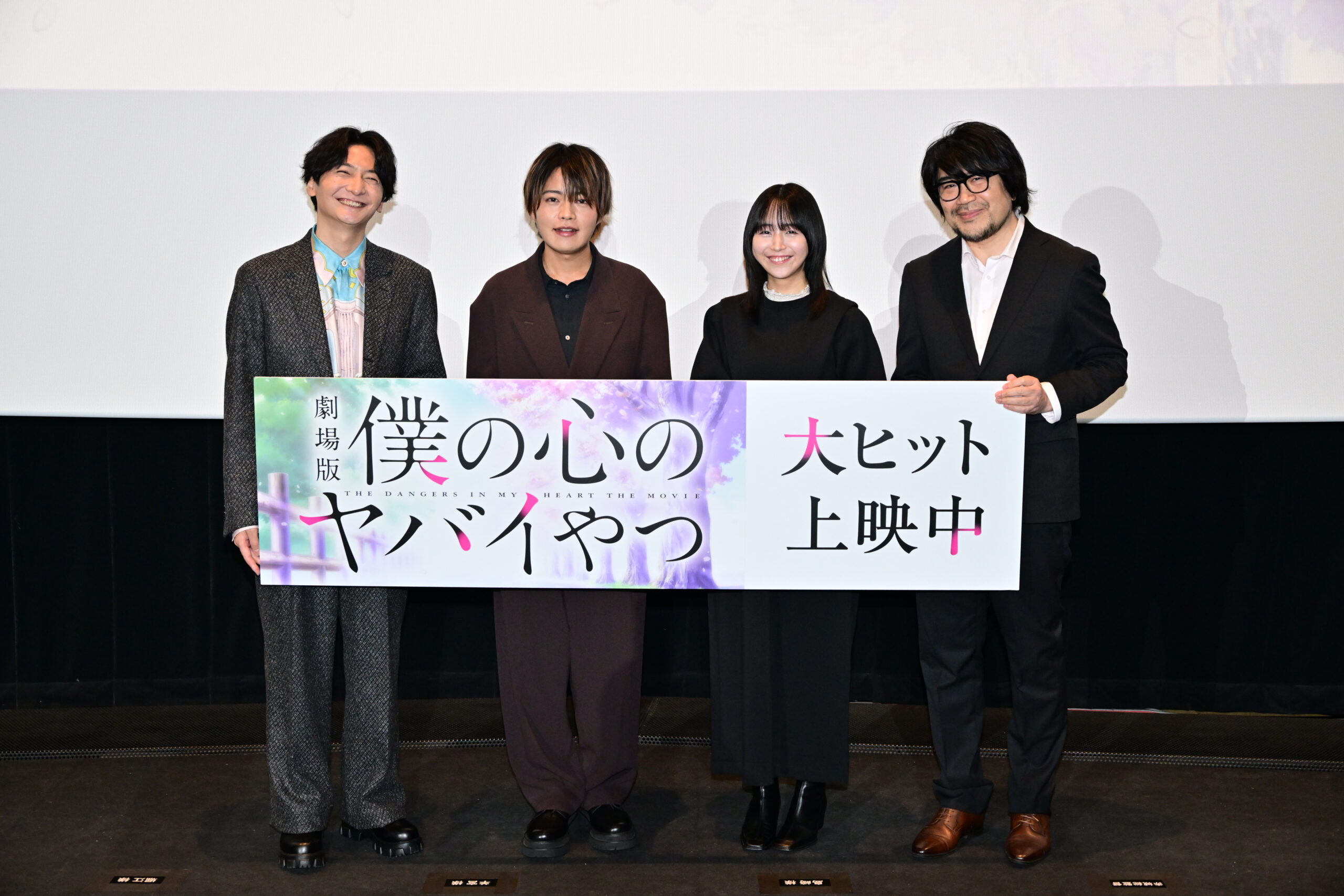 陰キャで中二病の中学生・市川京太郎と、天真爛漫な美少女・山田杏奈が紡ぐ青春初恋ラブコメディの劇場版『僕の心のヤバイやつ』の公開記念舞台挨拶が2月14日、東京・新宿バルト9で行われた。会場には声優の堀江瞬、羊宮妃那、島﨑信長、そして赤城博昭総監督が登壇。満員の客席を前に、それぞれが作品への思いを語った。
