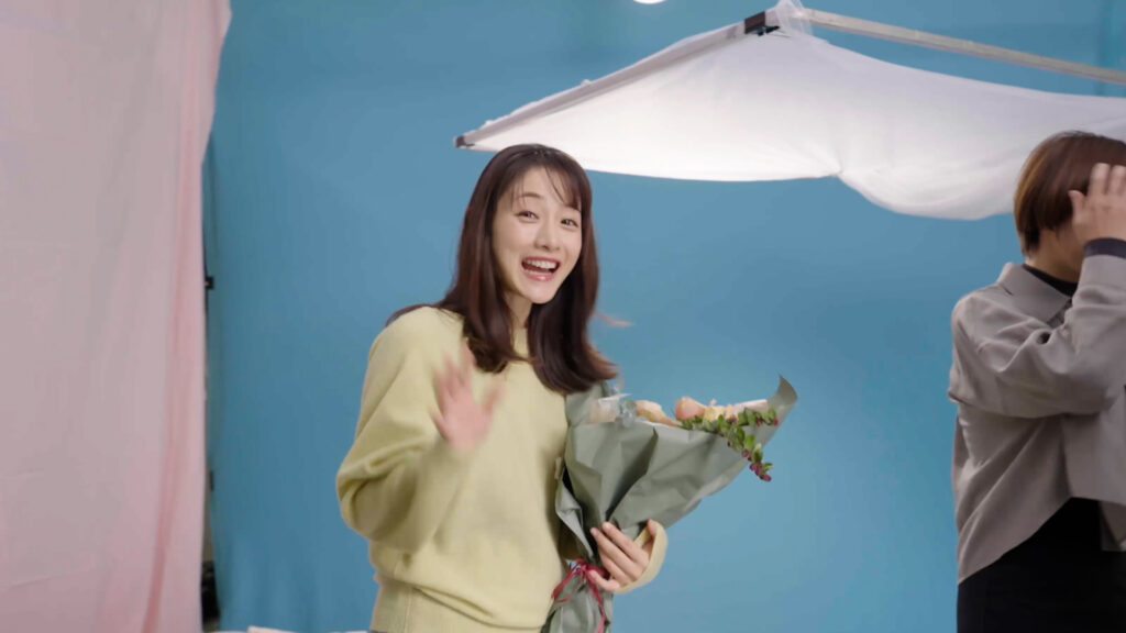 実際に『ハミングフレア リラックス』で仕上げたタオルを手にした感想についても、「あ~いい香り! タオルで吸い込むと顔全体で香りを感じられて、すごくリラックスできます」とコメント。現場でも自然体のリアクションが多く見られ、監督からも絶賛の声が上がったという。